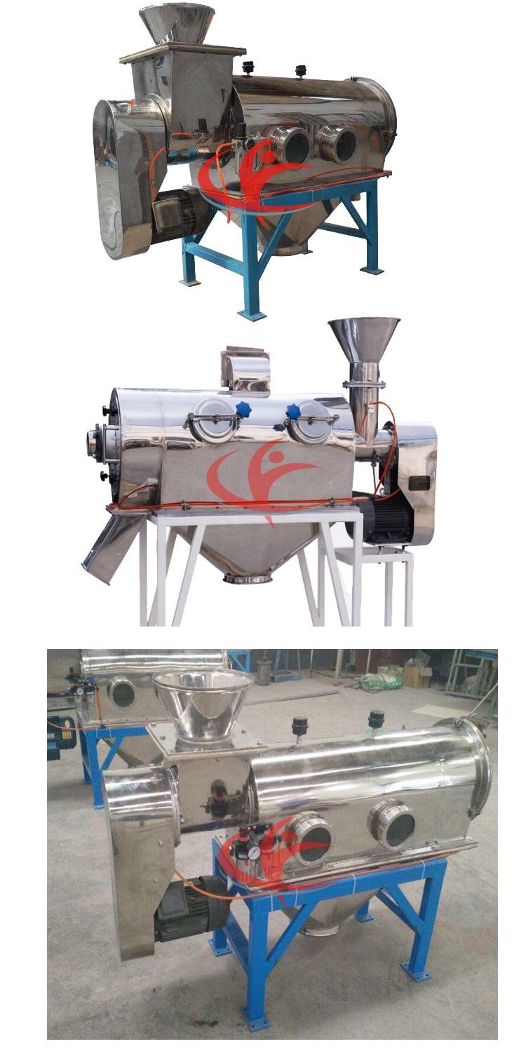 臥式氣流篩網(wǎng)為圓筒狀,置于機體內(nèi),物料通過螺旋輸送系統(tǒng)后,和氣流混合、霧化進入網(wǎng)筒內(nèi);通過網(wǎng)筒內(nèi)風輪葉片使物料同時受離心...